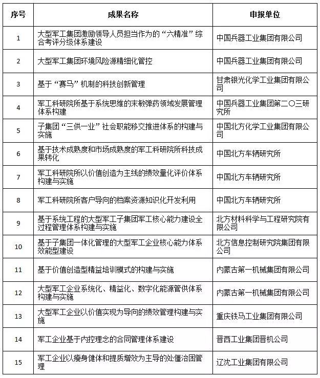 經(jīng)全國企業(yè)管理現(xiàn)代化創(chuàng)新成果審定委員會終審,第二十五屆全國企業(yè)管理現(xiàn)代化創(chuàng)新成果公布,中國兵器工業(yè)集團(tuán)4項(xiàng)創(chuàng)新成果榮獲二等獎。