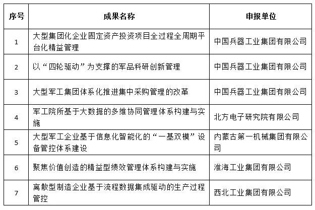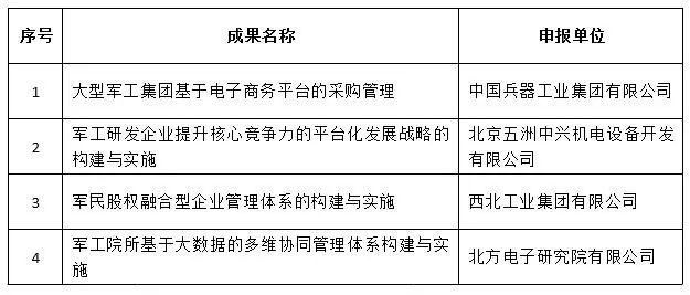 國防科技工業(yè)企業(yè)管理創(chuàng)新成果