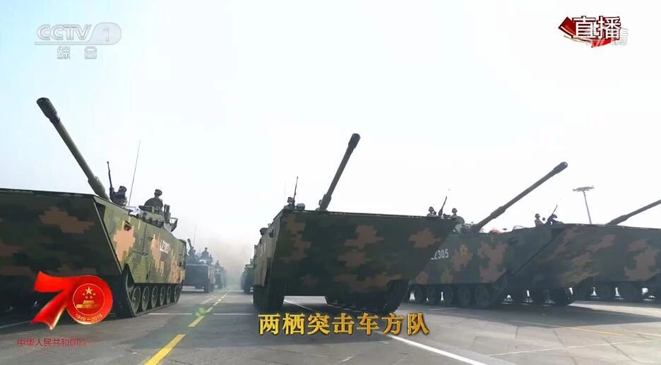 坦克方隊:“陸戰(zhàn)之王”箭形出場。99A主戰(zhàn)坦克作為陸軍地面作戰(zhàn)無可替代的主戰(zhàn)裝備,一如既往、氣勢磅礴呈“箭”形行進(jìn)在地面裝備方隊的最前列、頭陣領(lǐng)銜。99A坦克是我國自主研制的首型信息化坦克,它能夠依靠其強大的火力、防護(hù)能力和機動能力,在運動中精準(zhǔn)首發(fā)擊中目標(biāo),作戰(zhàn)能力上了新臺階,能殲滅敵方的主戰(zhàn)坦克和其他裝甲目標(biāo),摧毀敵野戰(zhàn)、堅固防御工事和有生力量。