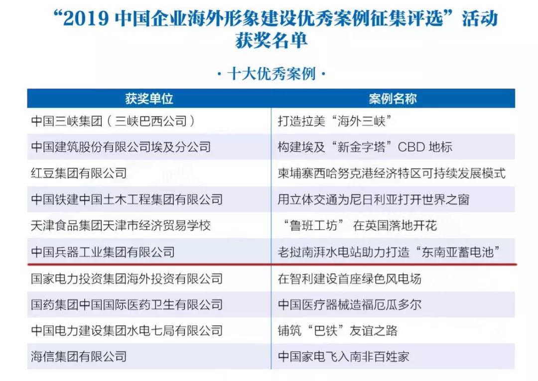12月3日,由國務(wù)院新聞辦公室、國務(wù)院國資委、全國工商聯(lián)指導,中國外文局主辦,中國報道雜志社承辦的“2019·中國企業(yè)海外形象高峰論壇”在北京舉行,由中國報道雜志社和國務(wù)院國資委新聞中心聯(lián)合開展的“2019中國企業(yè)海外形象建設(shè)優(yōu)秀案例征集活動”評選結(jié)果揭曉,中國兵器工業(yè)集團北方公司老撾南湃水電站項目榮獲2019中國企業(yè)海外形象建設(shè)十大優(yōu)秀案例及卓越社會責任獎。