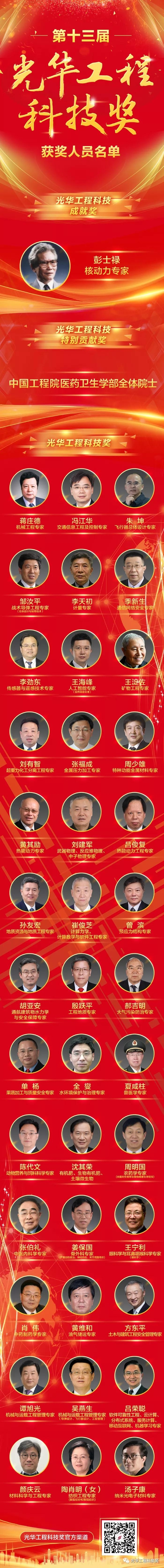 11月8日,第十三屆光華工程科技獎(jiǎng)揭曉儀式在北京隆重舉行。中國(guó)兵器工業(yè)集團(tuán)有限公司科技委副主任委員、戰(zhàn)術(shù)導(dǎo)彈工程專家鄒汝平獲第十三屆光華工程科技獎(jiǎng)(獲獎(jiǎng)人員全名單及鄒汝平事跡附后)。 光華工程科技獎(jiǎng)由中國(guó)工程院主管,每?jī)赡觐C發(fā)一次,目前已是第十三屆,被譽(yù)為“中國(guó)工程界最高獎(jiǎng)項(xiàng)”,極大地激勵(lì)了我國(guó)工程師、科學(xué)家從事工程科技研究、發(fā)展、應(yīng)用的積極性和創(chuàng)造性。根據(jù)光華工程科技獎(jiǎng)候選人提名要求,候選人需在重大工程設(shè)計(jì)、研制、建造、生產(chǎn)、運(yùn)行、管理等方面解決關(guān)鍵科學(xué)技術(shù)問題或在工程科學(xué)技術(shù)及工程管理領(lǐng)域有重要發(fā)現(xiàn)、發(fā)明,并有顯著應(yīng)用成效,或者是應(yīng)用本人研究成果、發(fā)明創(chuàng)造,發(fā)展高新技術(shù)及相關(guān)產(chǎn)業(yè),成效特別顯著者才可提名。今年,全國(guó)范圍內(nèi)共產(chǎn)生了296名有效候選人。 此次揭曉儀式正式公布了從296名候選人中評(píng)選出的第十三屆光華工程科技成就獎(jiǎng)、光華工程科技特別貢獻(xiàn)獎(jiǎng)以及光華工程科技獎(jiǎng)的獲得者,最終僅有40位專家和1個(gè)團(tuán)體獲獎(jiǎng)。本屆光華工程科技獎(jiǎng)的獲獎(jiǎng)科學(xué)家們,緊密圍繞國(guó)家重大戰(zhàn)略需求,瞄準(zhǔn)經(jīng)濟(jì)建設(shè)和事關(guān)國(guó)家安全的重大工程科技問題,緊貼新時(shí)代社會(huì)民生現(xiàn)實(shí)需求和軍民融合需求,加快自主創(chuàng)新成果轉(zhuǎn)化應(yīng)用,為創(chuàng)新驅(qū)動(dòng)發(fā)展,建設(shè)科技強(qiáng)國(guó),以及實(shí)現(xiàn)“兩個(gè)一百年”奮斗目標(biāo)和中國(guó)夢(mèng)做出了重要貢獻(xiàn)。 獲獎(jiǎng)人員全名單 來源/光華工程科技獎(jiǎng) |