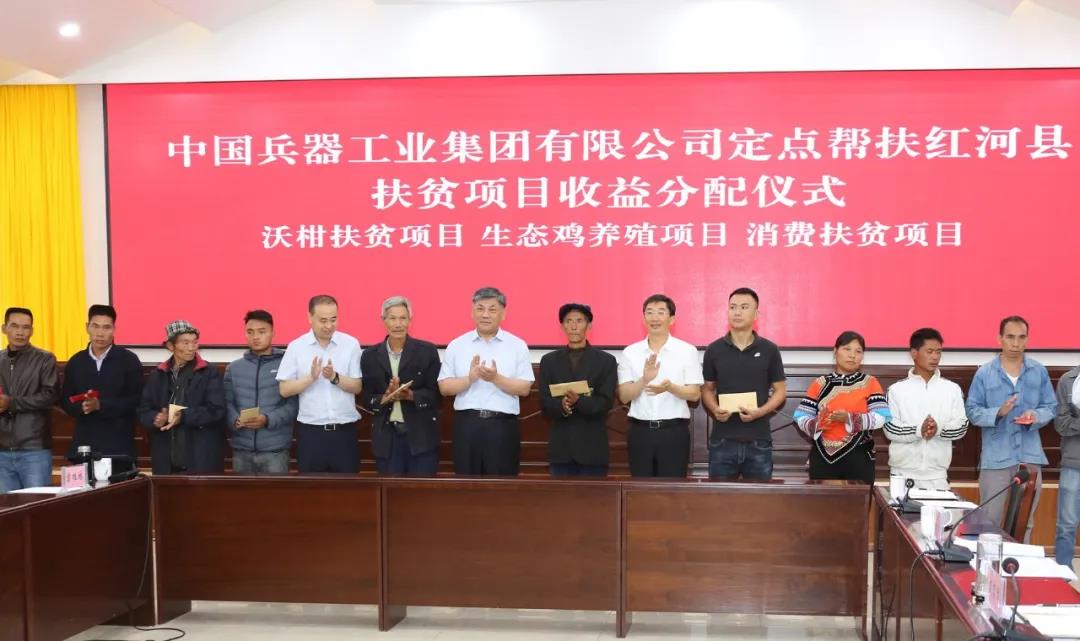 5月28日,劉大山與紅河州、紅河縣有關(guān)負(fù)責(zé)人進(jìn)行了座談,聽取紅河縣脫貧攻堅整體情況介紹,舉行幫扶項目分紅儀式。紅河州州委副書記盛高舉、紅河縣委書記張智俊對兵器工業(yè)集團(tuán)18年來給予紅河縣真扶貧、扶真貧的大量實際幫助表示由衷敬意與感謝,指出對紅河的幫扶充分體現(xiàn)了兵器工業(yè)集團(tuán)的政治擔(dān)當(dāng)和對邊疆人民的深情厚誼,希望在產(chǎn)業(yè)扶貧、就業(yè)扶貧、消費扶貧等方面繼續(xù)對紅河縣給予大力支持。
