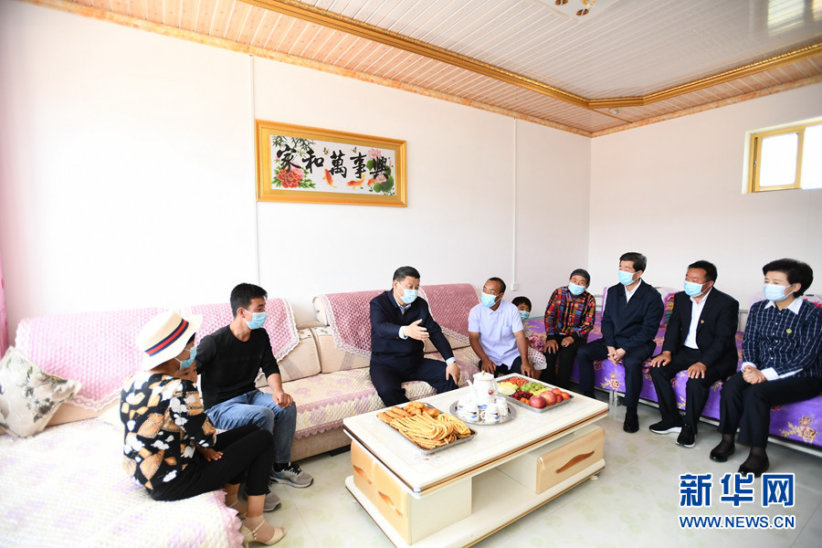 6月8日至10日,中共中央總書記、國家主席、中央軍委主席習(xí)近平在寧夏考察。這是6月8日下午,習(xí)近平在吳忠市紅寺堡區(qū)紅寺堡鎮(zhèn)弘德村看望移民搬遷群眾,向村民們揮手致意。 新華社記者 謝環(huán)馳 攝 新華社銀川6月10日電 中共中央總書記、國家主席、中央軍委主席習(xí)近平近日在寧夏考察時(shí)強(qiáng)調(diào),要全面落實(shí)黨中央決策部署,堅(jiān)持穩(wěn)中求進(jìn)工作總基調(diào),堅(jiān)持新發(fā)展理念,落實(shí)全國“兩會(huì)”工作部署,堅(jiān)決打好三大攻堅(jiān)戰(zhàn),扎實(shí)做好“六穩(wěn)”工作,全面落實(shí)“六保”任務(wù),努力克服新冠肺炎疫情帶來的不利影響,優(yōu)先穩(wěn)就業(yè)保民生,決勝全面建成小康社會(huì),決戰(zhàn)脫貧攻堅(jiān),繼續(xù)建設(shè)經(jīng)濟(jì)繁榮、民族團(tuán)結(jié)、環(huán)境優(yōu)美、人民富裕的美麗新寧夏。 夏日炎炎,塞上江南天高云淡,草木蔥蘢。6月8日至10日,習(xí)近平在寧夏回族自治區(qū)黨委書記陳潤(rùn)兒、自治區(qū)政府主席咸輝陪同下,先后來到吳忠、銀川等地,深入農(nóng)村、社區(qū)、防洪工程、農(nóng)業(yè)產(chǎn)業(yè)園區(qū)等,就統(tǒng)籌推進(jìn)常態(tài)化疫情防控和經(jīng)濟(jì)社會(huì)發(fā)展工作、鞏固脫貧攻堅(jiān)成果、加強(qiáng)生態(tài)環(huán)境保護(hù)、推動(dòng)民族團(tuán)結(jié)進(jìn)步進(jìn)行調(diào)研。 6月8日至10日,中共中央總書記、國家主席、中央軍委主席習(xí)近平在寧夏考察。這是6月8日下午,習(xí)近平在吳忠市紅寺堡區(qū)紅寺堡鎮(zhèn)弘德村扶貧車間,同正在加工制作紙箱的村民交流。 新華社記者 鞠鵬 攝 吳忠市紅寺堡區(qū)紅寺堡鎮(zhèn)弘德村是生態(tài)移民村,有建檔立卡貧困戶1036戶4497人,目前還有20戶50人未脫貧。8日下午,習(xí)近平首先來到弘德村考察脫貧攻堅(jiān)工作。在村扶貧車間院內(nèi),他聽取了寧夏以及弘德村脫貧攻堅(jiān)情況介紹。走進(jìn)扶貧車間,習(xí)近平同正在加工制作紙箱的村民們親切交流。鄉(xiāng)親們告訴總書記,村里引入企業(yè)從事紙箱包裝業(yè)務(wù),解決了一百多人就業(yè)問題。習(xí)近平表示肯定。他指出,興辦扶貧車間目的是扶貧,要堅(jiān)持扶貧性質(zhì),向困難群眾傾斜,多招收困難群眾就業(yè)。鄉(xiāng)親們?cè)诩议T口就業(yè),雖然收入不比進(jìn)城務(wù)工高,但省去了住宿、伙食、交通等費(fèi)用,還能照顧家庭,一舉多得。企業(yè)參與興辦扶貧車間,體現(xiàn)了先富帶后富,很有意義。 6月8日至10日,中共中央總書記、國家主席、中央軍委主席習(xí)近平在寧夏考察。這是6月8日下午,習(xí)近平在吳忠市紅寺堡區(qū)紅寺堡鎮(zhèn)弘德村察看回族村民劉克瑞家院落。 新華社記者 謝環(huán)馳 攝 隨后,習(xí)近平步行察看村容村貌。在回族村民劉克瑞家,他仔細(xì)看院落、客廳、臥室、廚房、牛棚,詳細(xì)了解家庭就業(yè)、收入、看病、社保等情況。劉克瑞告訴總書記,家里的耕地流轉(zhuǎn)了,還養(yǎng)了3頭肉牛,兒子兒媳在附近紡織廠打工,2017年全家脫貧,生活越來越好,鄉(xiāng)親們打心底里感到黨的政策好,真切感受到共產(chǎn)黨親。習(xí)近平詢問劉克瑞老兩口還有什么困難、對(duì)今后的日子有什么打算。習(xí)近平強(qiáng)調(diào),鄉(xiāng)親們搬遷后,更好生活還在后頭。希望鄉(xiāng)親們百尺竿頭、更進(jìn)一步,發(fā)揮自身積極性、主動(dòng)性、創(chuàng)造性,用自己的雙手創(chuàng)造更加美好的新生活。 6月8日至10日,中共中央總書記、國家主席、中央軍委主席習(xí)近平在寧夏考察。這是6月8日下午,習(xí)近平在吳忠市紅寺堡區(qū)紅寺堡鎮(zhèn)弘德村,同回族村民劉克瑞一家親切交流。 新華社記者 謝環(huán)馳 攝 離開村子時(shí),村民們紛紛趕到村口,歡送總書記。習(xí)近平向大家揮手致意,祝愿鄉(xiāng)親們生活幸福。 6月8日至10日,中共中央總書記、國家主席、中央軍委主席習(xí)近平在寧夏考察。這是6月8日下午,習(xí)近平在黃河吳忠濱河大道古城灣砌護(hù)段,察看黃河生態(tài)治理保護(hù)狀況。 新華社記者 鞠鵬 攝 習(xí)近平高度重視黃河流域生態(tài)保護(hù)和高質(zhì)量發(fā)展。他來到黃河吳忠濱河大道古城灣砌護(hù)段,沿岸邊步道,察看黃河生態(tài)治理保護(hù)狀況,聽取黃河寧夏段生態(tài)保護(hù)治理和水利工程建設(shè)情況匯報(bào)。習(xí)近平指出,黃河是中華民族的母親河,是中華民族和中華文明賴以生存發(fā)展的寶貴資源。自古以來,黃河水滋養(yǎng)著寧夏這片美麗富饒的土地,今天仍在造福寧夏各族人民。寧夏要有大局觀念和責(zé)任擔(dān)當(dāng),更加珍惜黃河,精心呵護(hù)黃河,堅(jiān)持綜合治理、系統(tǒng)治理、源頭治理,明確黃河保護(hù)紅線底線,統(tǒng)籌推進(jìn)堤防建設(shè)、河道整治、灘區(qū)治理、生態(tài)修復(fù)等重大工程,守好改善生態(tài)環(huán)境生命線。 6月8日至10日,中共中央總書記、國家主席、中央軍委主席習(xí)近平在寧夏考察。這是6月8日下午,習(xí)近平在吳忠市利通區(qū)金花園社區(qū)黨群活動(dòng)服務(wù)中心,同社區(qū)志愿者代表親切交談。 新華社記者 鞠鵬 攝 6月8日至10日,中共中央總書記、國家主席、中