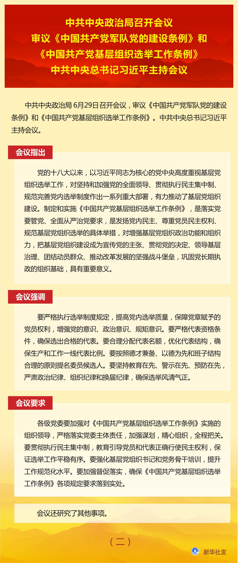 審議《中國共產(chǎn)黨軍隊(duì)黨的建設(shè)條例》和《中國共產(chǎn)黨基層組織選舉工作條例》 習(xí)近平主持會(huì)議