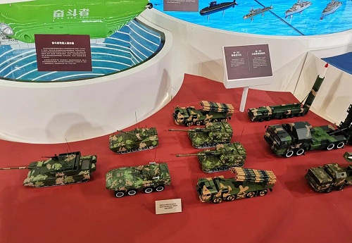 ▲我國自主研制的主戰(zhàn)坦克、輪式步兵戰(zhàn)車和遠程火箭炮等陸軍主戰(zhàn)裝備