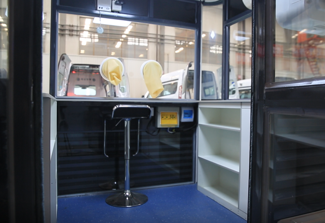 核酸采樣工作站長、寬各2.3米,高2.7米,下部由鋁合金等復(fù)合材料搭建,上部四圍鑲嵌厚厚的透明玻璃,像一個小型的全封閉流動崗?fù)?。整個工作站包括艙體、正壓新風系統(tǒng)、消毒系統(tǒng)、空調(diào)、對講系統(tǒng)、采樣系統(tǒng)、登記系統(tǒng)、低溫轉(zhuǎn)運箱、儲物柜、滅火器等,可實現(xiàn)一側(cè)登記、一側(cè)采樣,醫(yī)護人員和受采者完全隔離,避免醫(yī)護人員感染,其舒適的工作環(huán)境同樣有利于提高采樣效率。