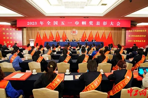 3月24日,2023年全國五一巾幗獎(jiǎng)表彰大會(huì)在北京召開。圖為表彰大會(huì)現(xiàn)場。中工網(wǎng)記者 王鑫 攝