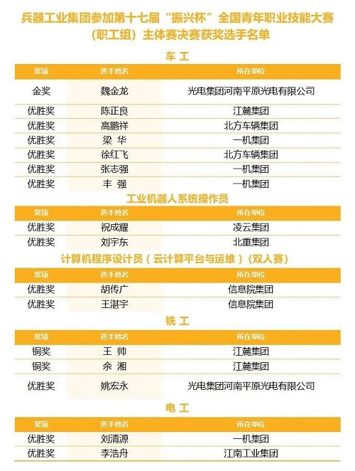 喜報(bào)丨兵器工業(yè)集團(tuán)青年職工在第十七屆“振興杯”全國(guó)青年職業(yè)技能大賽(職工組)決賽中勇奪金獎(jiǎng)