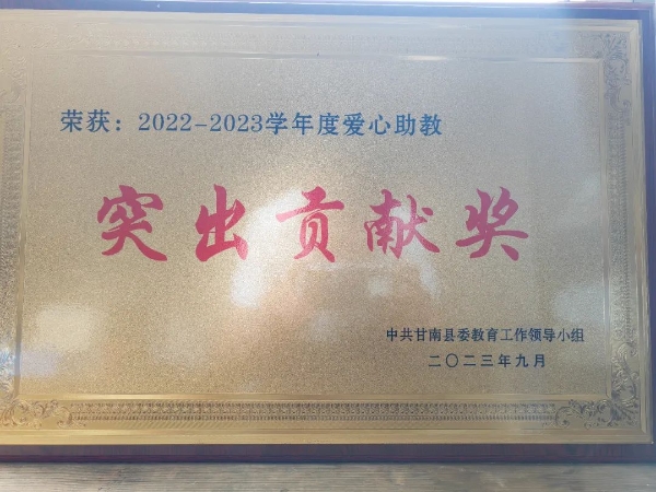 9月7日,在第39個(gè)教師節(jié)來(lái)臨之際,黑龍江甘南縣委教育工作領(lǐng)導(dǎo)小組授予中國(guó)兵器工業(yè)集團(tuán)有限公司愛(ài)心助教“突出貢獻(xiàn)獎(jiǎng)”,以表彰兵器工業(yè)集團(tuán)在教育領(lǐng)域?yàn)楦誓峡h鄉(xiāng)村振興作出的突出貢獻(xiàn)。