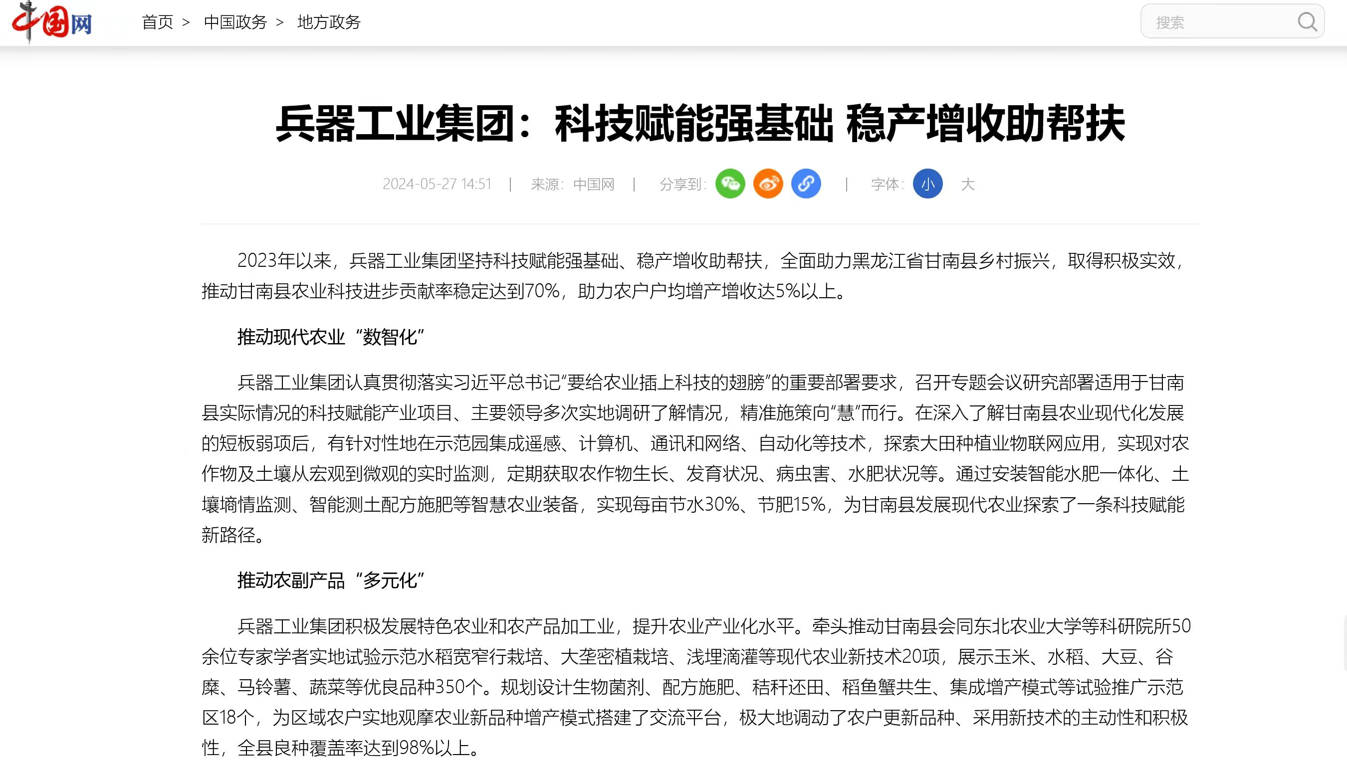 中國網(wǎng)報(bào)道兵器工業(yè)集團(tuán)科技賦能 助力黑龍江省甘南縣鄉(xiāng)村振興 |