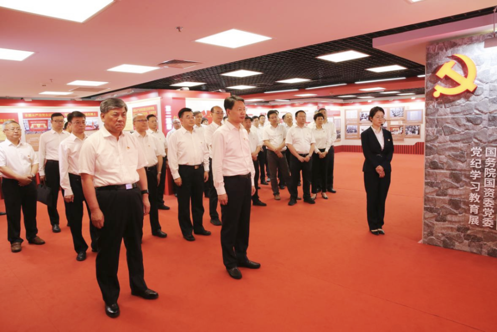黨組同志認(rèn)真聆聽講解,集體參觀了“政治鑄魂——習(xí)近平總書記重要論述”“紀(jì)法樹威——黨規(guī)黨紀(jì)相關(guān)要求”“傳承增信——黨的優(yōu)良傳統(tǒng)”“嚴(yán)管促行——國務(wù)院國資委黨委紀(jì)律建設(shè)成效”“警示立戒——反面典型案例”“實干建功——工作展望”6個篇章,通過觀看圖文、視頻等形式多樣的展品展示,進(jìn)一步學(xué)習(xí)領(lǐng)會習(xí)近平總書記關(guān)于國資央企的重要指示批示精神和黨的紀(jì)律建設(shè)的重要論述,學(xué)習(xí)把握《中國共產(chǎn)黨紀(jì)律處分條例》新增、修訂內(nèi)容,全面了解國務(wù)院國資委黨委強(qiáng)化政治引領(lǐng)、加強(qiáng)政治監(jiān)督、深化紀(jì)律建設(shè)、抓實巡視工作等方面的做法舉措,集中觀看近年來國資央企發(fā)生的具有代表性的違規(guī)違紀(jì)案例,深刻領(lǐng)悟以習(xí)近平同志為核心的黨中央堅持黨要管黨、全面從嚴(yán)治黨取得的歷史性成就,全面感受國務(wù)院國資委黨委全面從嚴(yán)治黨取得的重要成果。
